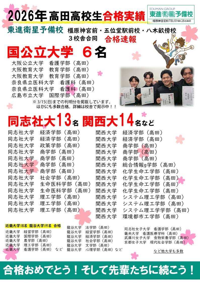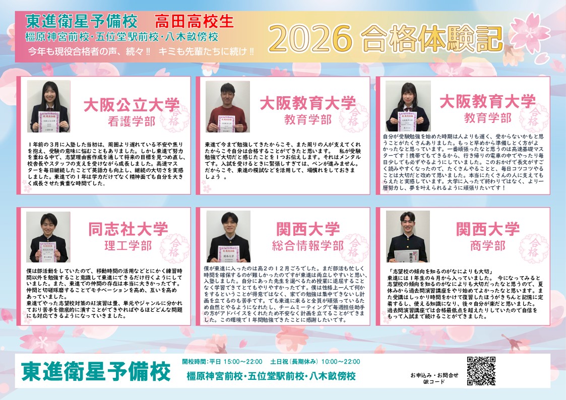 エリア奈良県香芝市 対象高校生・高卒浪人生・中学生(中高一貫校生)
