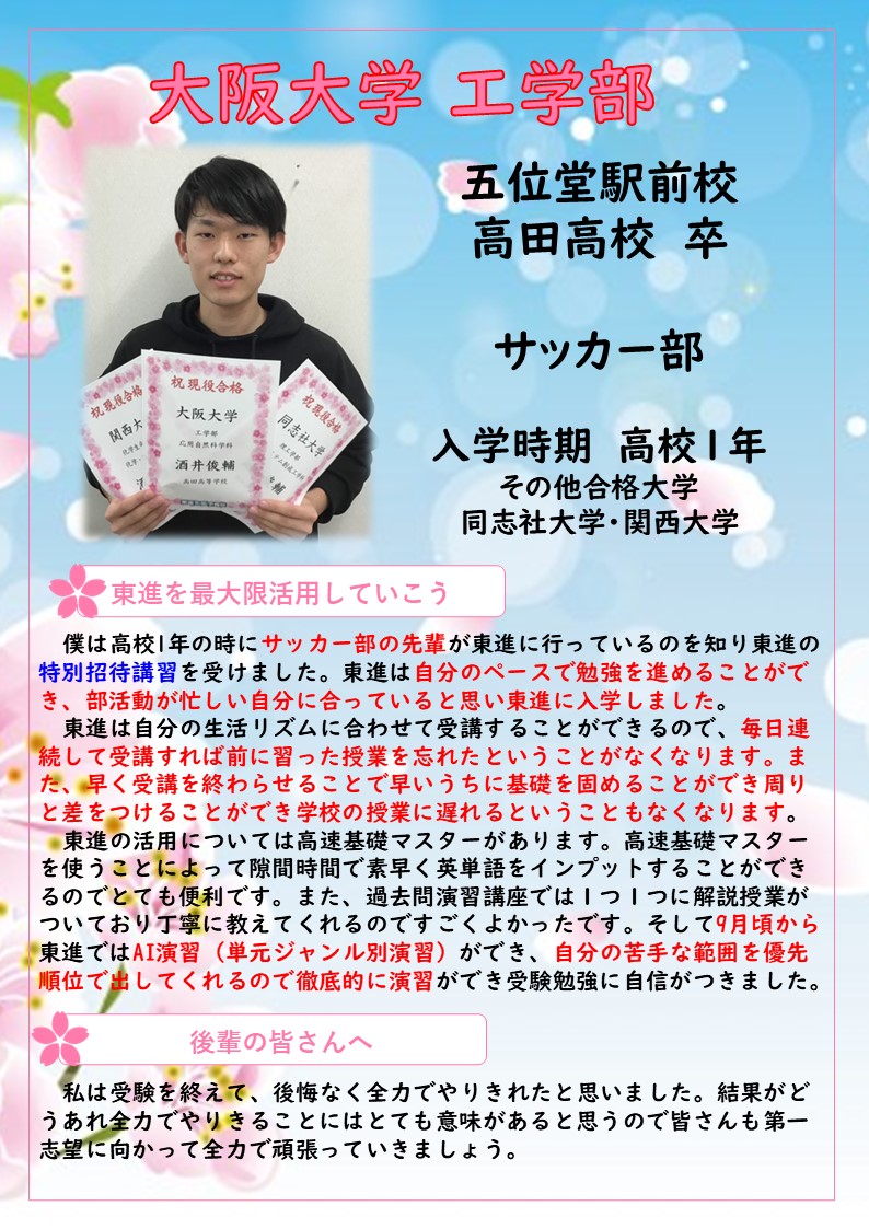 東進式の中学生専用プログラム。中学内容を中2までに修了、高校内容を早期にスタート・修了させることにより、最難関大学合格に欠かせない、過去問対策に圧倒的な時間を割くことができます。