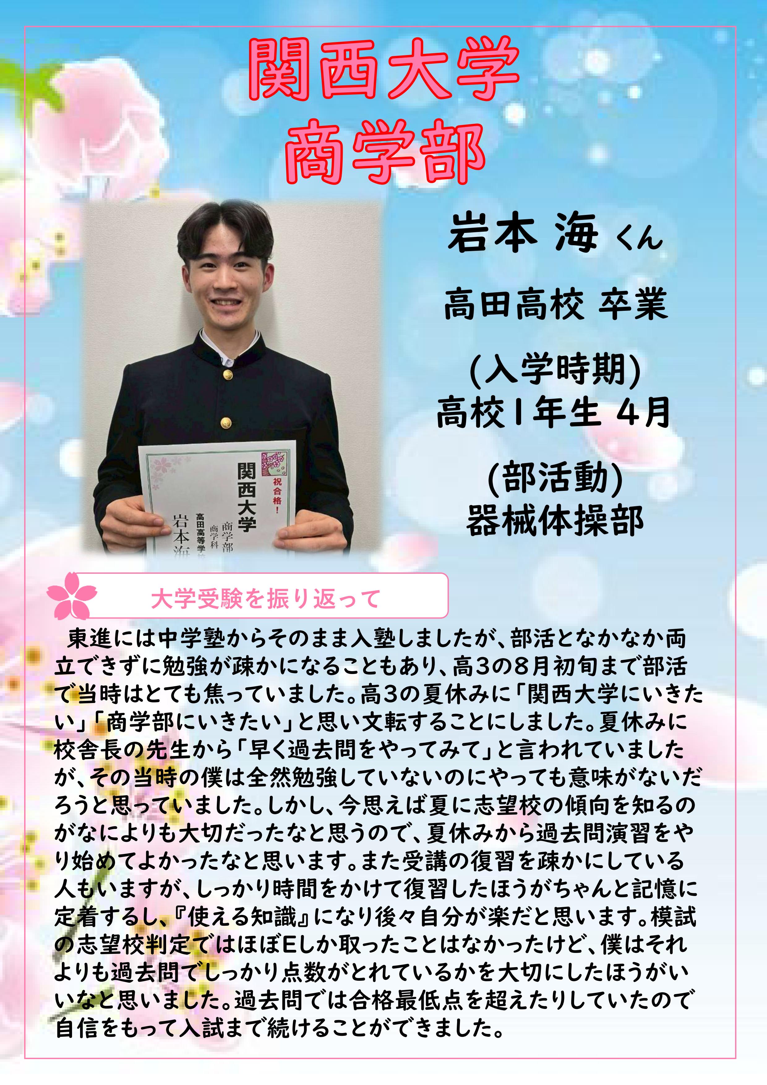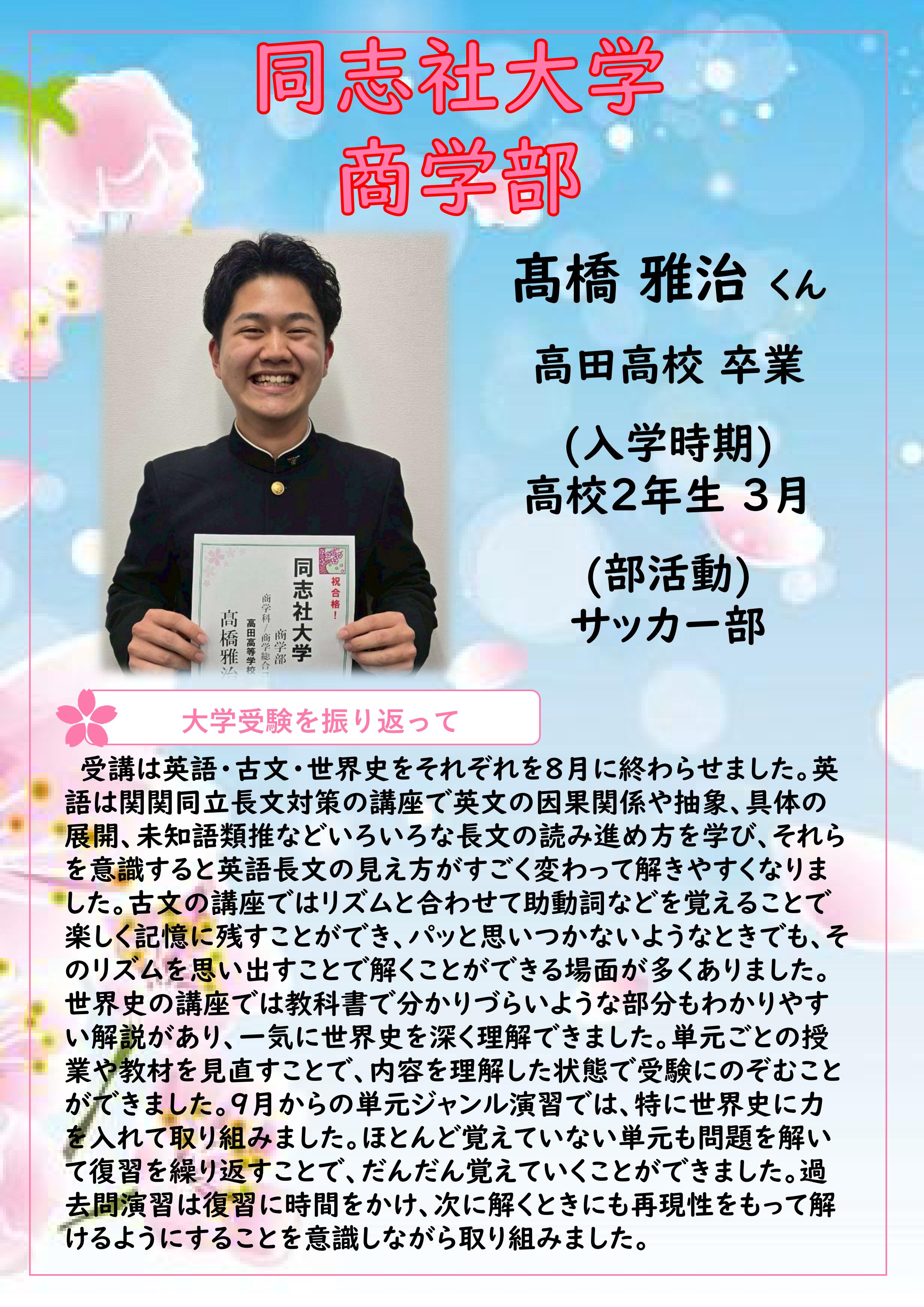 今年も橿原神宮前校よりたくさんの現役合格者が出ました! 高田高校の高3生の現役合