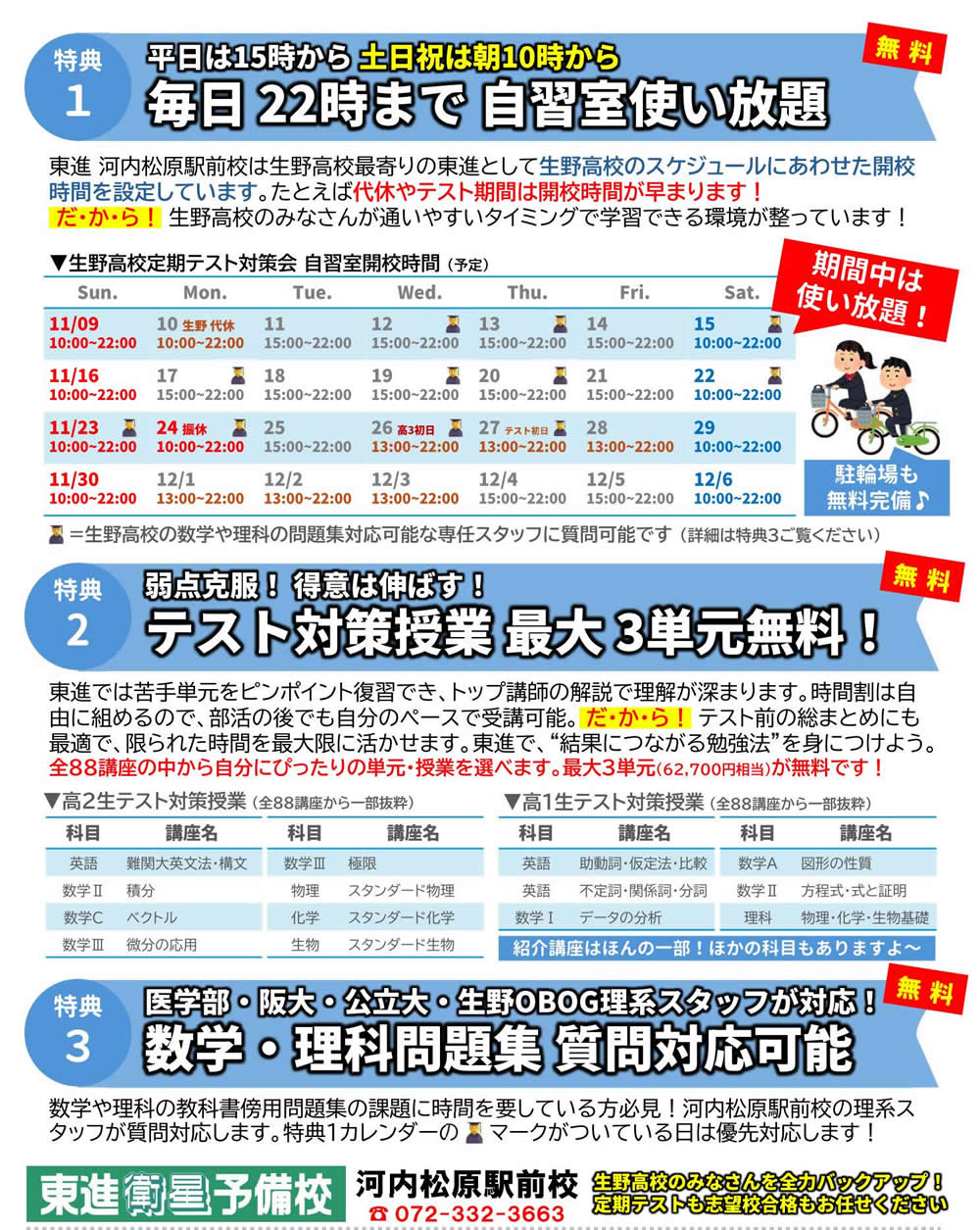 エリア大阪府松原市 対象高校生・高卒浪人生・中学生(中高一貫校生)