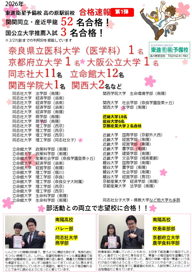 南陽高校・東大寺学園中学校高校・奈良高校など